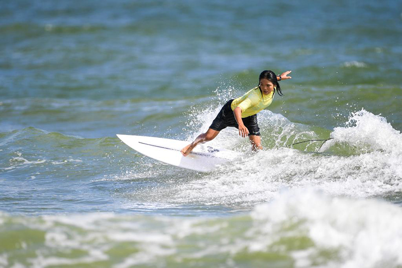 7月12日,第一屆全國學生(青年)運動會沖浪項目女子短板決賽在廣西北海市舉行。(新華社記者 曹祎銘/攝)