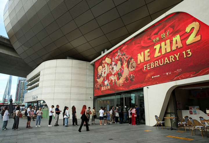 2025年2月11日,在澳大利亞悉尼,觀眾排隊入場參加《哪吒之魔童鬧?!废つ崾子扯Y。(新華社記者 馬平/攝)
