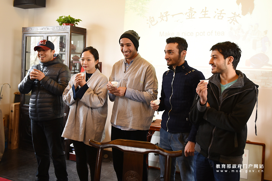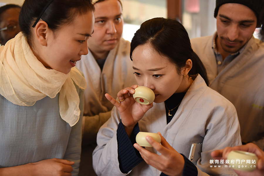 近日,江蘇大學15名海外留學生走進茶文化體驗館,開展“中國茶,世界品”活動,他們在茶藝師帶領下,學習體驗茶具選取、茶葉沖泡、品茶禮儀等,了解傳統茶文化技藝,感受濃濃的中國文化魅力。(徐國文 楊雨/攝)