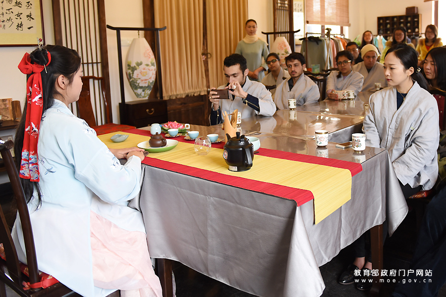 江蘇大學的留學生在了解和體驗中國茶文化。(徐國文 楊雨/攝)