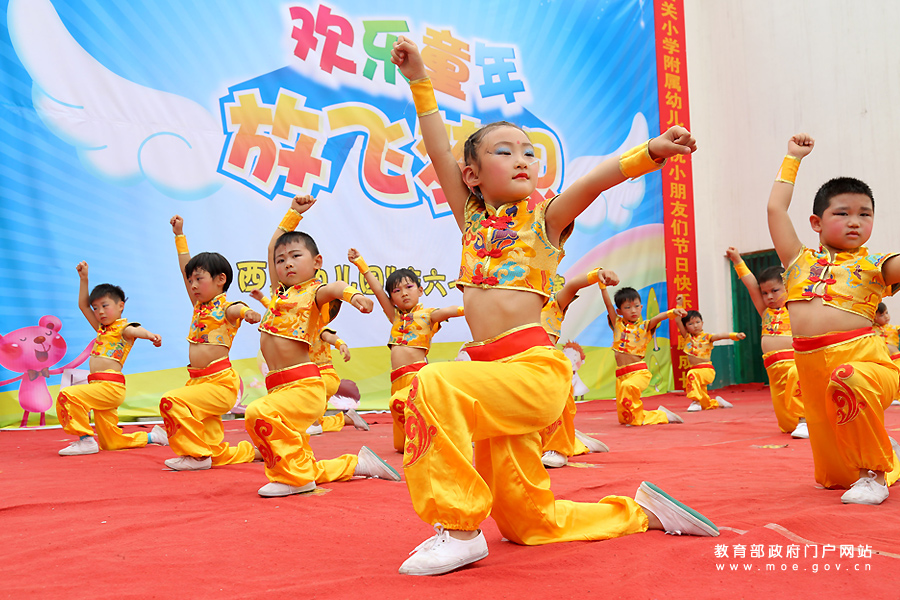 河南省溫縣實驗二小附屬幼兒園的小朋友們在表演舞蹈。(徐宏星/攝)