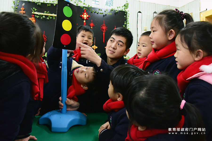 1月5日,江蘇省鎮江市解放路幼兒園開展“幼兒學交通安全知識”活動,邀請京口交警大隊的交警通過交通安全標識、模擬紅綠燈等,指導小朋友學習交通安全知識,增強孩子們的交通安全意識。(石玉成 巫娟/攝)
