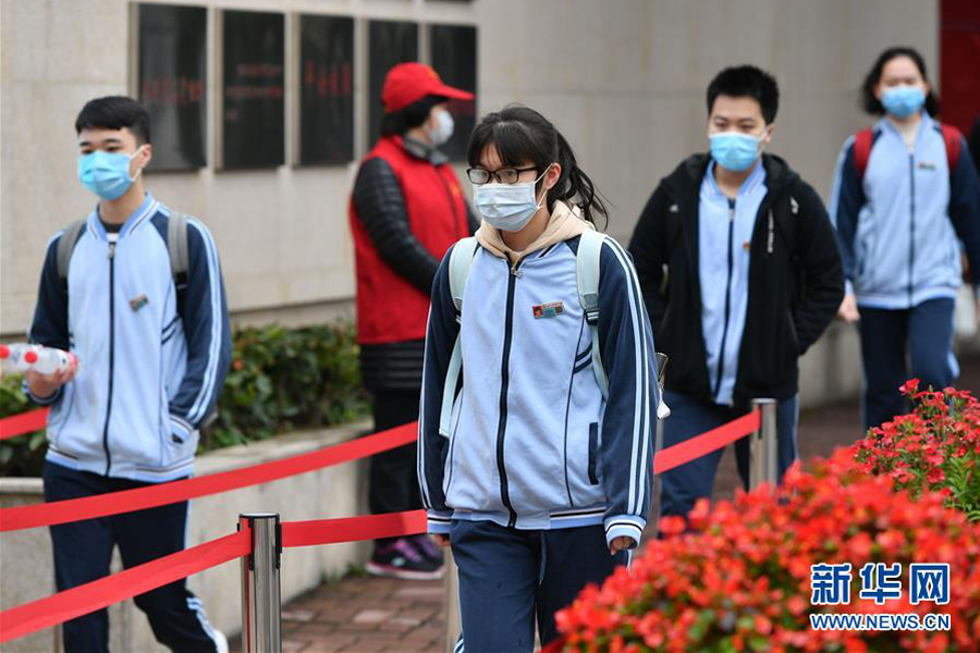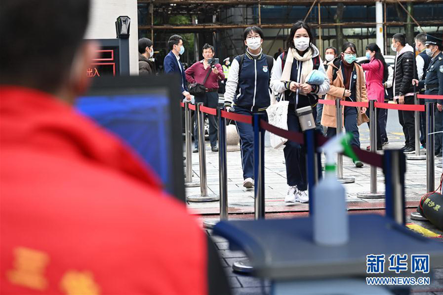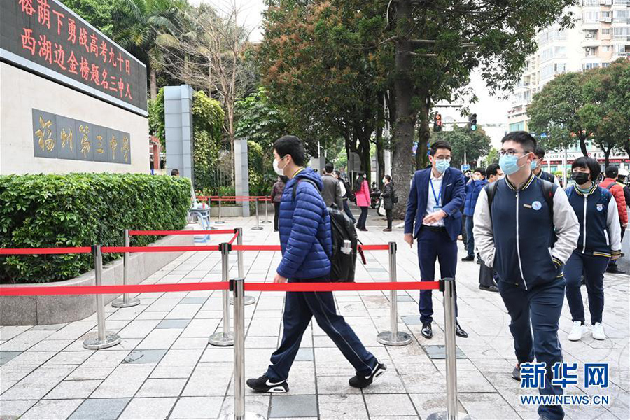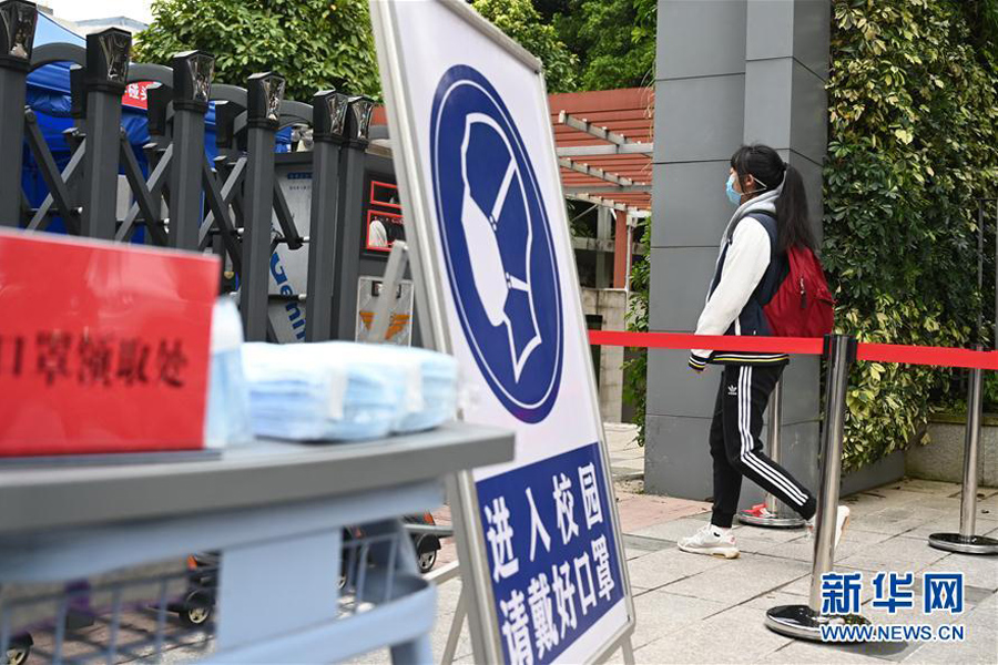 4月7日,福州屏東中學高三年級學生有序進入校園大門。 當日,福建省高三年級學生開學復課。(新華社記者 魏培全/攝)