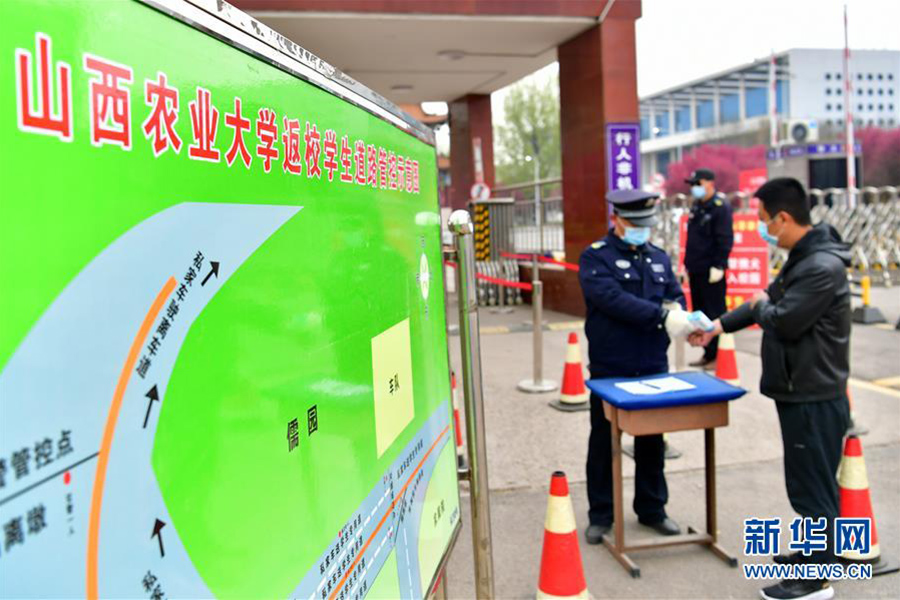 4月9日,工作人員在為山西農業大學畢業年級開學復課做準備工作。(新華社記者 曹陽/攝)