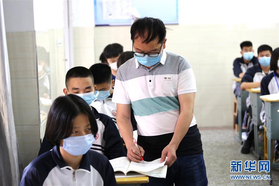 4月20日,在福建省龍巖市第九中學,教師在批改初三學生作業。(新華社發 曾德猛/攝)