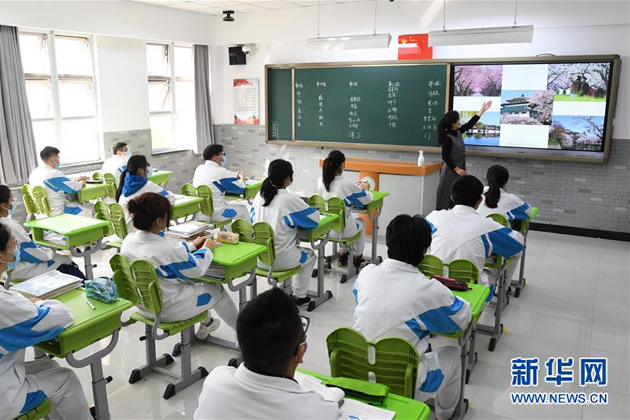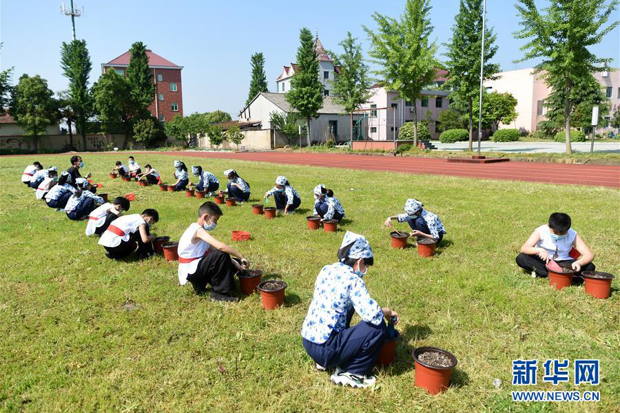 4月29日,浙江諸暨上聯小學五年級的學生栽種辣椒秧苗?!拔逡弧眹H勞動節來臨之際,浙江省諸暨市姚江鎮上聯小學在嚴格防疫的同時,分班錯時開展農耕勞作專題實踐活動。 據諸暨市教育體育局介紹,近年來,諸暨市全域推進、整體提升中小學勞動教育質量和水平,目前全市292所中小學“校校有勞動基地,人人可實踐體驗”。(新華社記者 韓傳號/攝)