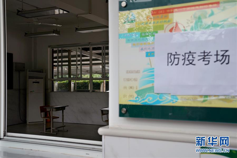 6月27日,上海市閔行區莘松中學考點內設置的防疫考場,考試進行中如有考生出現發熱或不適等,將移至防疫考場。(新華社記者 劉穎/攝)