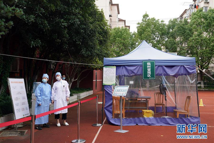 6月27日,上海市閔行區莘松中學考點中設置的“臨時留觀區”,入校時體溫過高的考生將在此留觀。(新華社記者 劉穎/攝)