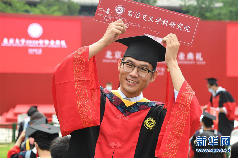 7月2日, 北京大學2020屆畢業生在畢業典禮結束后拍照留念。(新華社記者 任超/攝)