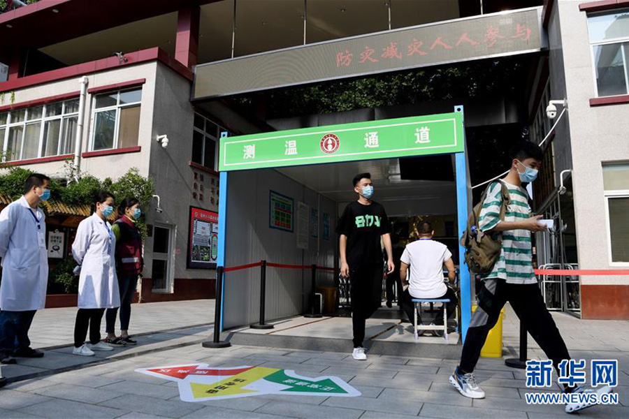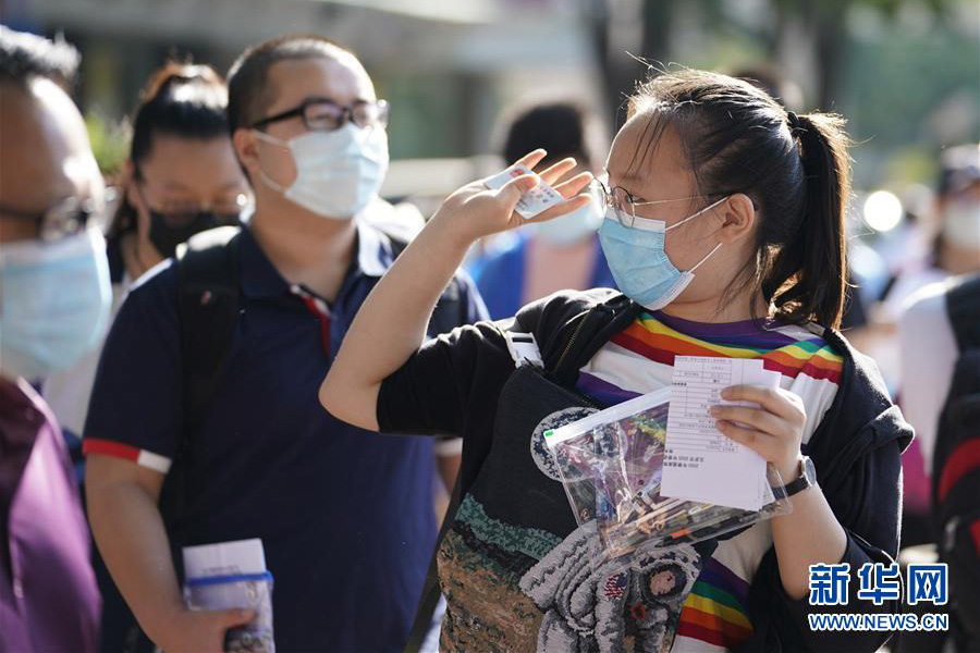 7月7日,考生有序進入吉林省長春市的東北師范大學附屬中學考點。 當日,2020年高考拉開帷幕。(新華社記者 許暢/攝)