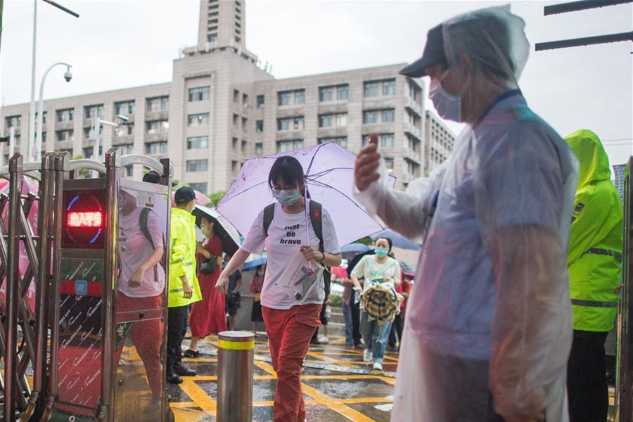 7月7日,考生通過測溫通道進入河南省鄭州市八中考點。(新華社記者 郝源/攝)