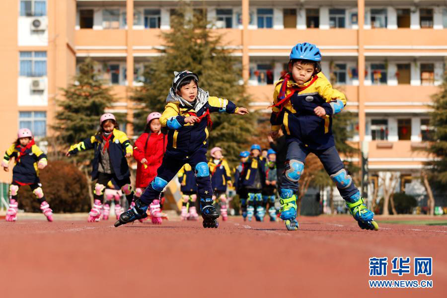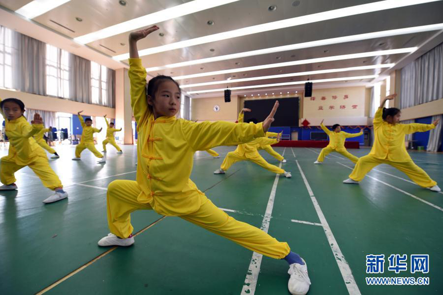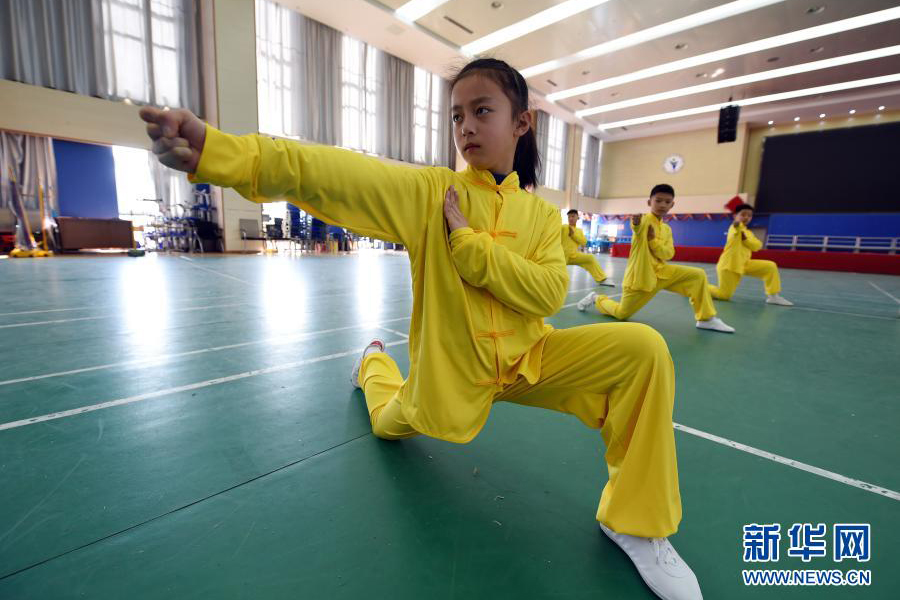 1月13日,合肥市一六八玫瑰園學校武術社團的學生在練習武術。(新華社記者 周牧/攝)