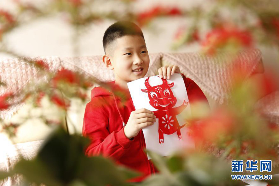 1月24日,一名小朋友在展示親手繪制的年俗主題燈籠。(石玉成/攝)