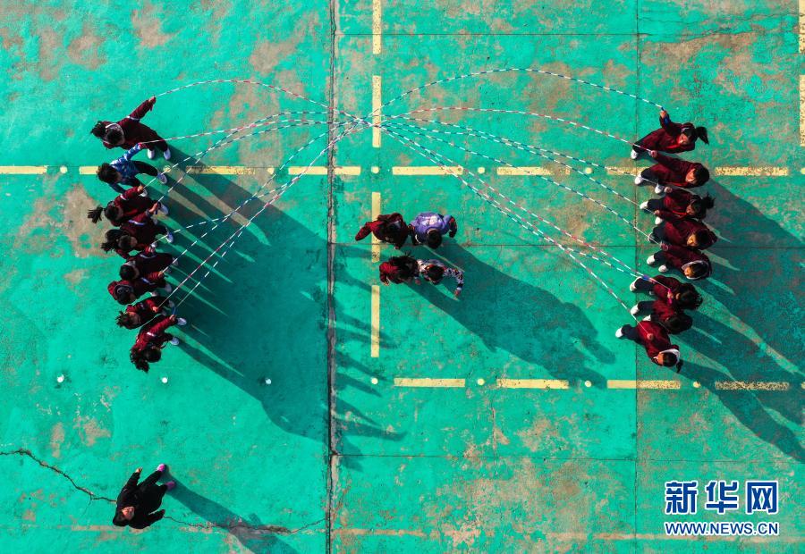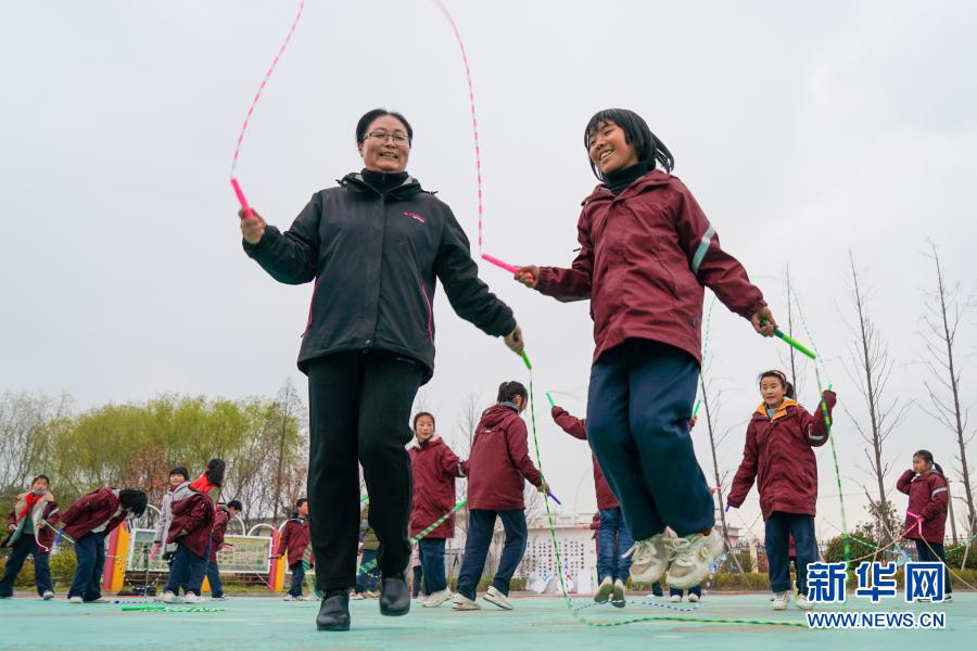1/0騎路小學的學生們在練習雙組交互繩魚貫“8”字跳(3月9日攝)。單搖、雙搖、長繩……在江蘇省睢寧縣騎路小學,孩子們從“花樣跳繩”中找到了屬于他們的成長樂趣。從2010年起,學校利用大課間、陽光體育課,發展花樣跳繩運動。一根細細的跳繩,在孩子們的手中就像被施了魔法,跳出了變幻莫測的花樣:有單人跳、雙搖、集體跳等基本跳法,還有車輪跳、交互跳、敬禮跳、胯下跳、環形交叉跳等花樣跳法。學校成立了十二個與跳繩相關的社團,適合不同年齡和水平的學生參加。通過跳繩,孩子們不僅鍛煉了身體,也增強了自信心和團隊精神。(新華社記者 李博/攝)