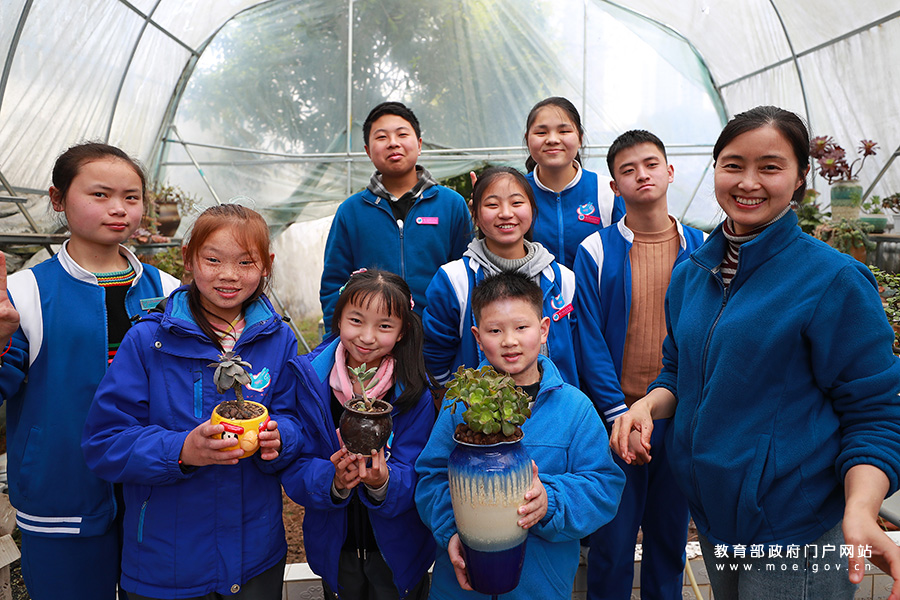 3月23日,貴州省務川縣特教學?;ɑ艽笈飪?,老師和學生一起進行盆景栽培實習。(鄭啟彥、張學軍/攝)