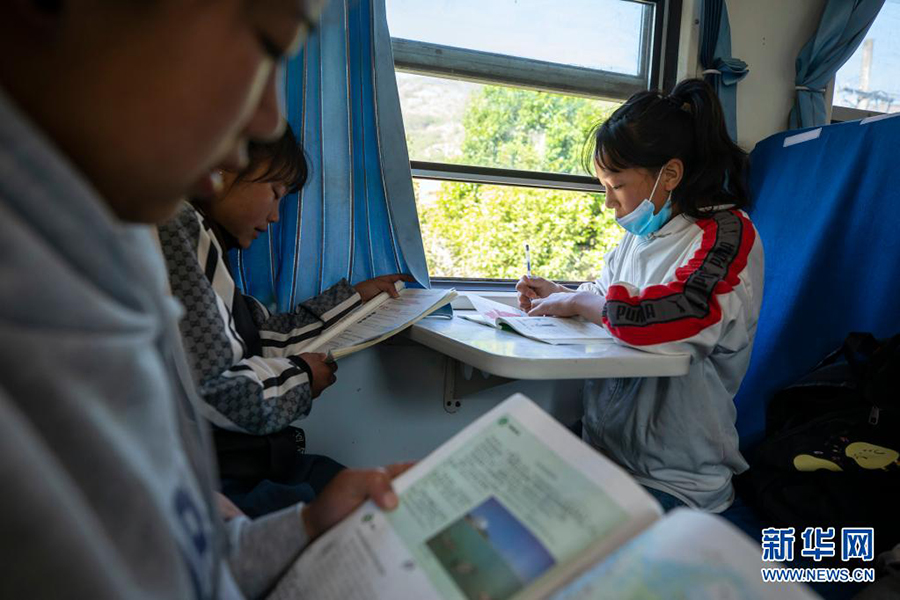 1/0乘坐5633次列車去上學的西昌市川興中學學生吉米木加在路上復習功課(4月11日攝)。在成昆鐵路上,如今依然開通著平均時速不到40公里的5633/5634次列車,從四川省涼山彝族自治州的普雄開往攀枝花南,全程376公里共行駛11小時4分鐘,沿途???6個站。票價最高25.5元,最低2元,已經30多年沒有變過。5633/5634次列車被人們親切地稱為“慢火車”,陪伴著四川大涼山地區幾代人的成長,是百姓外出的“公交列車”,也是孩子們求學的“校車”。相比乘坐長途汽車,乘坐“慢火車”出行,更安全也更便宜。在這列特別的“校車”上,學生們讀書、聊天、玩耍,“慢火車”承載著他們的夢想,帶著他們向著未來前行。(新華社記者 沈伯韓/攝)