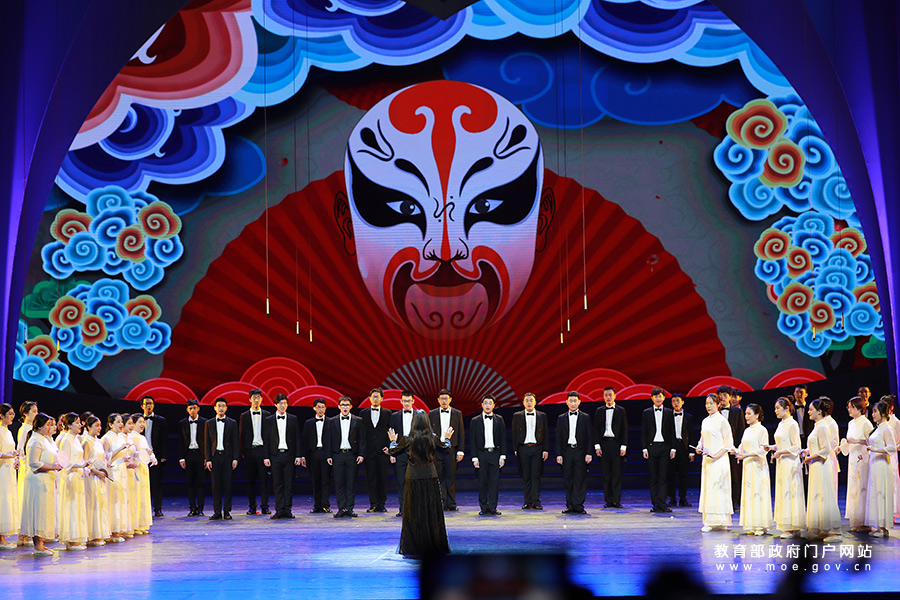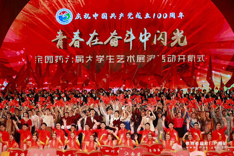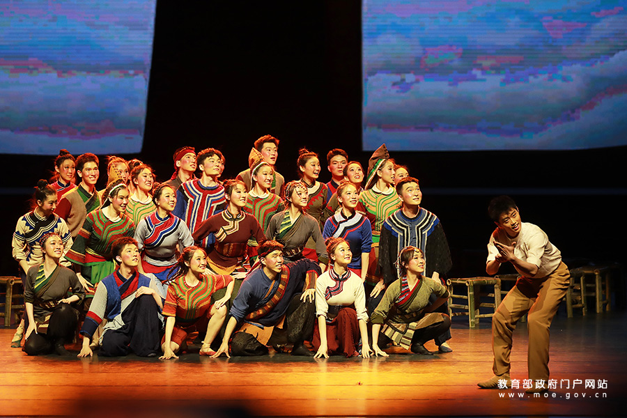 1/05月6日,在大學生藝術展演活動現場,同學們正在表演民族舞蹈。當日,全國第六屆大學生藝術展演活動在成都開幕?!绊灨璜I給黨、奮進新時代”,本屆展演將突出展示當代大學生與中國共產黨同行、與祖國同行、與人民同行、與時代同行、與夢想同行的理想信念和青春風采,以莊重的儀式感、熱烈的喜慶感,慶祝中國共產黨成立100周年。近年來,我國著力推進美育教學改革,以培養學生的審美和人文素養為目標,通過“教會、勤練、常展、常演”,充分調動“師、生、家、校、社”五大主體,培養學生基本的藝術知識、技能和專項藝術特長,給學生欣賞、體驗美的機會,培養他們創造美的能力。(張學軍/攝 曹建/文)