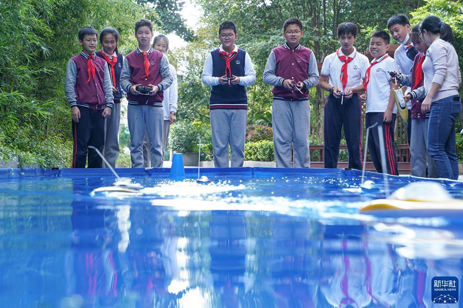 10月26日,上海市位育初級中學學生在上綜合模型課。新學期,上海市位育初級中學積極落實“雙減”政策,根據學生年級特點,設立了綜合模型、攝影藝術、天體演化等拓展課程,豐富學生學習生活。(新華社記者 丁汀/攝)