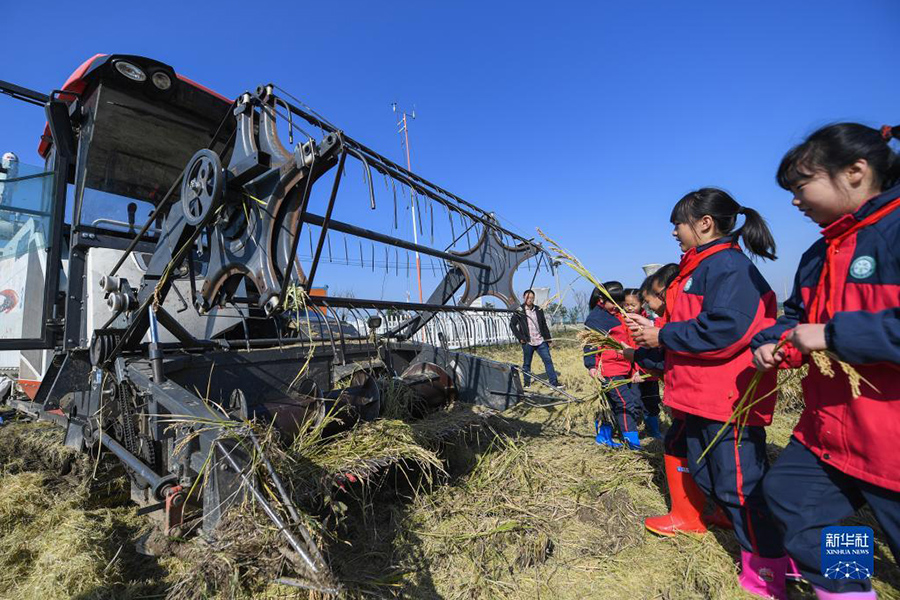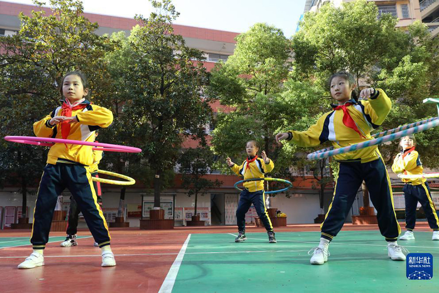 11月10日,衡陽市雁峰區環城南路小學的同學在玩呼啦圈。(新華社發 周仲輝/攝)