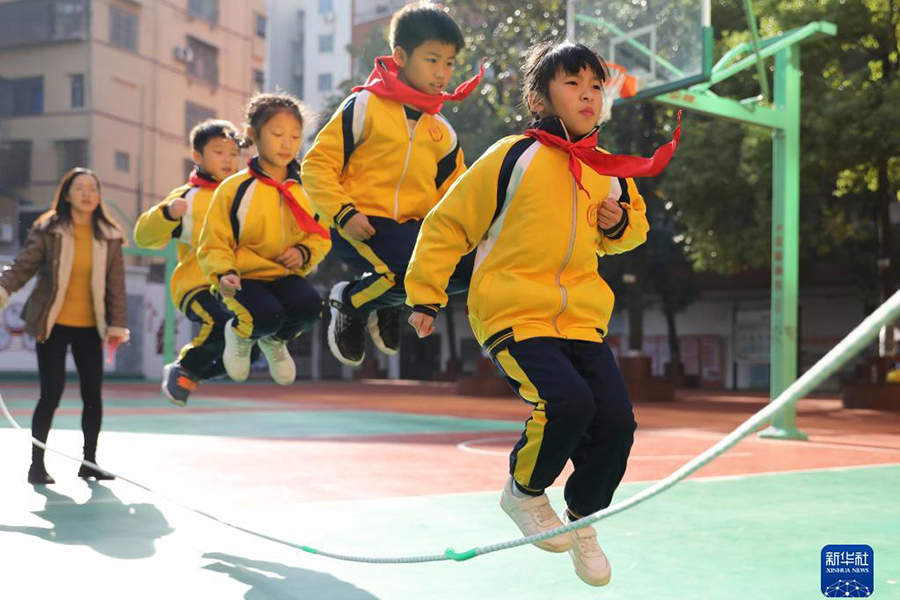 11月10日,衡陽市雁峰區環城南路小學的同學在跳繩。(新華社發 周仲輝/攝)