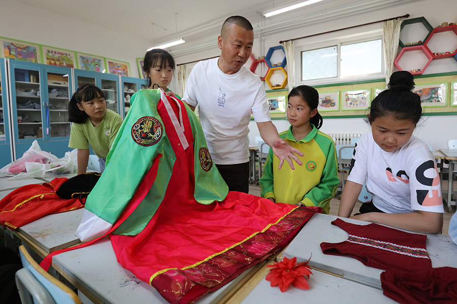圍繞舞蹈教育,學校美術社團學生在教師指導下學習、了解各民族服飾特點。(本報記者 樊世剛/攝 通訊員 趙長順/文)