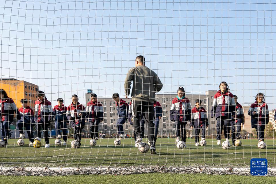 12月21日,學生在貴州省黔西一中上足球課。(新華社發 范暉/攝)