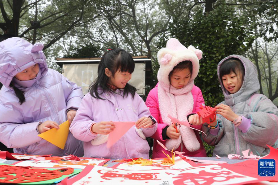 1月19日,在江蘇省揚州市春江社區,非遺傳承人指導孩子們學習剪紙。寒假期間,各地學生參加多彩文體活動,增長知識、強健體魄,樂享假期生活。(新華社發 孟德龍/攝)