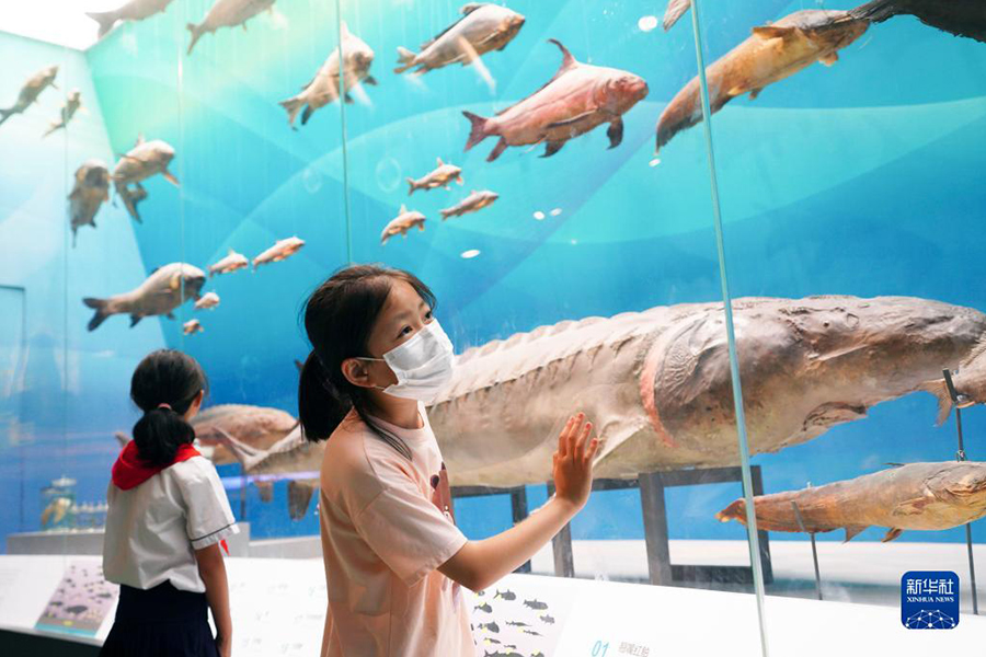 7月12日,孩子們在重慶自然博物館內參觀。(新華社發 秦廷富/攝)