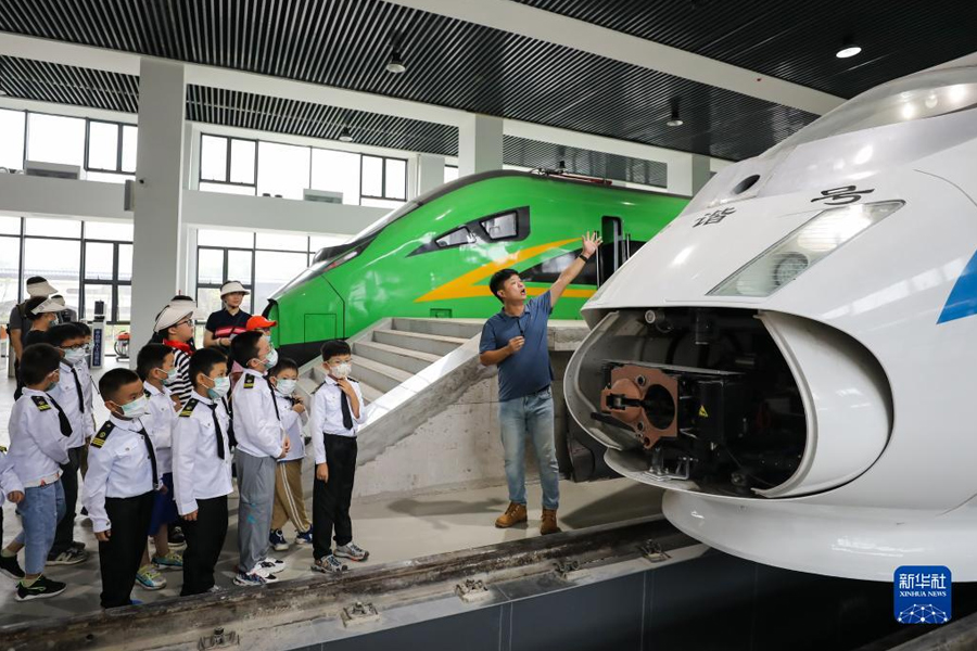 8月26日,來自陜西西安部分學校的22名小學生在西鐵教育培訓基地參觀。(新華社發 劉翔/攝)