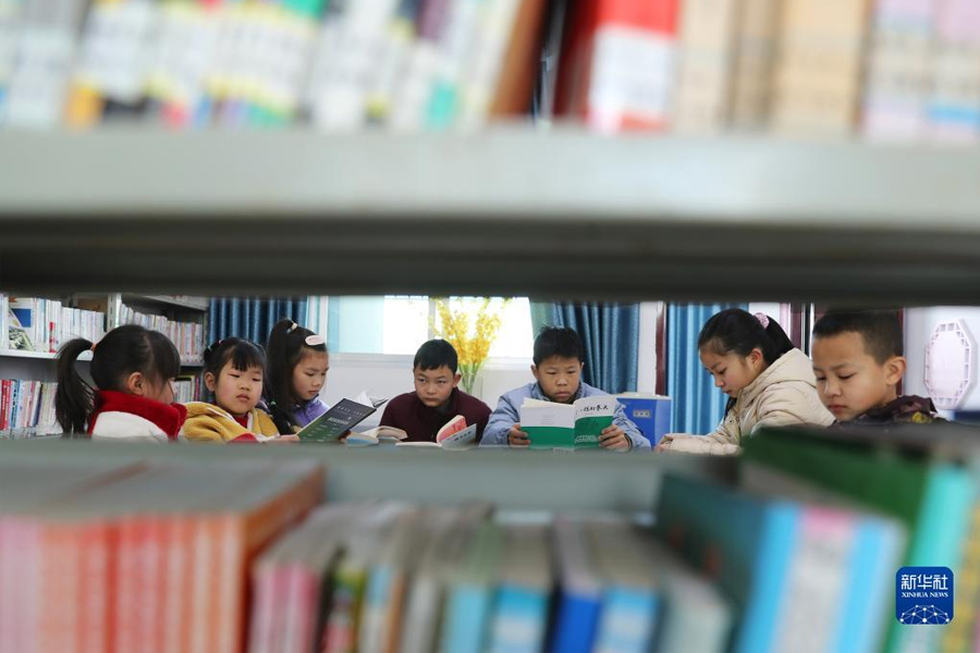 1月30日,在衡陽市衡山縣永和鄉松坳村,孩子們在村農家書屋看書。近年來,湖南省衡陽市衡山縣加強農家書屋建設,在全縣153個行政村、社區建起農家、社區書屋,為孩子們提供假期好去處,也為當地精神文明建設添助力。(新華社發 曹正平/攝)