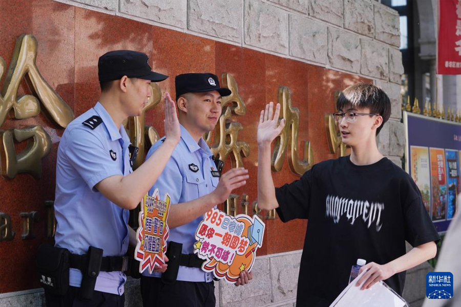 7月7日,在山東省青島市城陽區夏莊街道白沙河濕地,中國海洋大學的學生(左)準備放歸救助的紅隼。(新華社發 王海濱/攝)