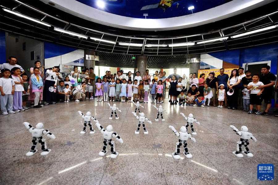 7月25日,孩子們在山東榮成華能石島灣核電科技館參觀。(新華社發 李信君/攝)