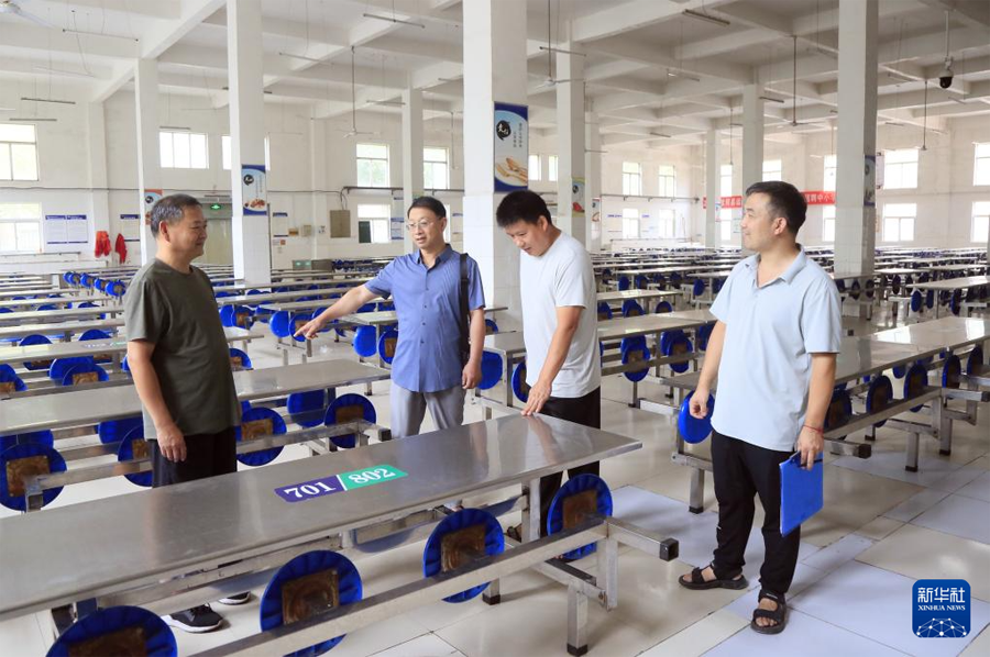 8月25日,河南省洛陽市汝陽縣直屬初級中學教職工對學校餐廳進行安全檢查。(新華社發 康紅軍/攝)