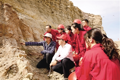 國家級教學名師朱筱敏與克拉瑪依校區學生進行野外地質實習。(學校供圖)