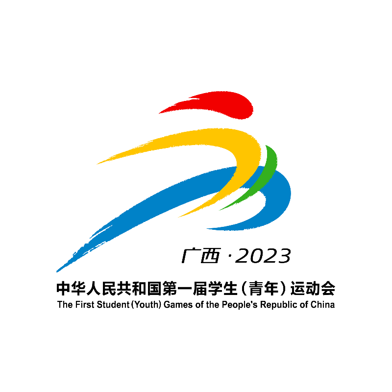 會徽由“廣西”二字組成的書法合體字,整體造型為一個青春飛揚的運動員形象。會徽融入了廣西壯族圖騰元素之一的“牛角”以及象征奧運精神的“圣火”元素,采用奧運五環的顏色,彎彎的大角奮勇向前,威武雄壯。會徽突出廣西地理名稱、特征和文化底蘊,展現出壯鄉獨特的精神風貌。