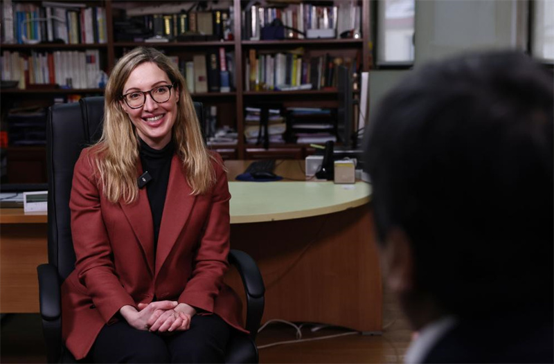 2024年1月8日,戴高樂將軍的曾孫女納塔莉·戴高樂在法國巴黎接受新華社記者專訪。(新華社記者 高靜/攝)