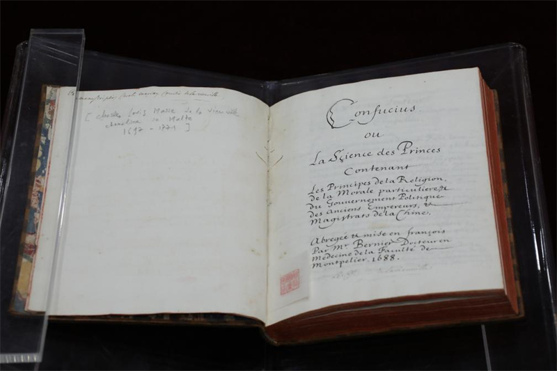 典藏于中國國家圖書館中的法國國禮《論語導讀》(資料照片)。(新華社記者 張爽/攝)