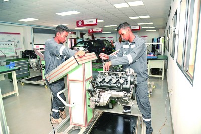 在中非職業教育合作框架和中方合作院校的幫助下,魯班工坊搭建了一個汽車維修實訓基地,開設了涉及高級維修電工、現代電氣控制、液壓與氣壓傳動、自動生產線等在內的多個專業實訓室,并配備了各類先進的教學設備、實訓裝置、工程實踐套件等。