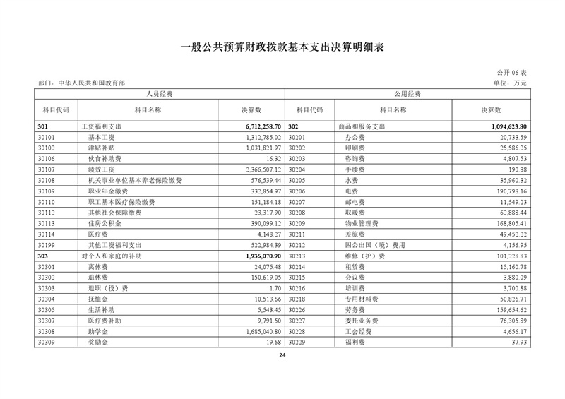 教育部2024年度部門決算 |